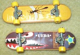 Skateboards. They are the little 57 mm mini Tech Deck fingerboards.